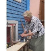 14.08.2015 «Пусть не строитель по профессии…» (6+) В начале августа Анна Марковна Иванова встретила своё 86-летие. В числе подарков от родных оказался и этот электрорубанок, который виновница торжества тут же с удовольствием опробовала в деле. Удивляться могут только те, кто не знает Анну Марковну: на своём подворье в Лихачах она ещё в прошлом десятилетии держала коров, а на девяти сотках огорода и сегодня всё успевает. Глядя на её огородные хлопоты, горожанин может спросить: – Откуда берутся время и силы? А Анна Марковна оглянется и спросит себя: – Чем бы ещё сегодня заняться? И вот с помощью соседа (он сделал металлический каркас) она уже строит на участке летнюю беседку. А ведь её профессия вовсе не связана со строительством и ремонтом – Анна Марковна работала воспитателем и методистом в городских детсадах (сначала в «Звёздочке», потом в «Солнышке»). Но с другой стороны – росла в войну, рано овдовела, оставшись хозяйкой в частном доме… потому работу с деревом она знает и любит не меньше, чем традиционное женское рукоделие. К сказанному можно добавить, что в непогоду и межсезонье ей и в доме не скучно – здесь А. Иванова осваивает компьютер и пишет мемуары, вяжет и шьёт, принимает в гостях внуков и правнуков (а их уже больше десятка!) И на мой вопрос о жизненных тяготах отвечает философски: – Зачем ждать всегда только хорошего от жизни? В ней надо повидать и хорошее, и плохое – иначе как сможешь отличать одно от другого? Подготовка публикации – Владислав Никонов |